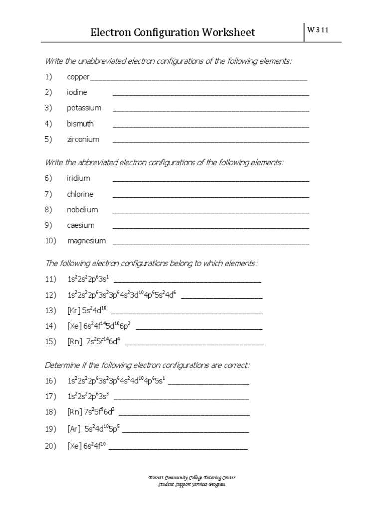 Electron configuration worksheet answer key.